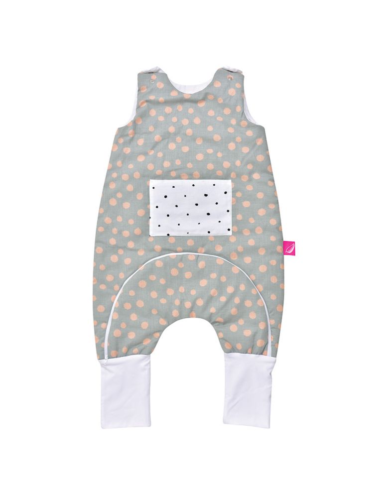 Innowacyjnie wszyty zamek bardzo ułatwia wymianę pieluchy – po jego rozpięciu uzyskujemy komfortową przestrzeń, niespotykaną w innych modelach śpiworków z nogawkami. To pierwszy tego typu śpiworek na rynku. Oferuje on jednocześnie komfort swobodnego przemieszczania się (dzięki nogawkom), oraz komfort wyjątkowo nieinwazyjnej wymiany pieluchy (dzięki innowacyjnemu sposobowi wszycia suwaka). Ponadto śpiworek został wyposażony w zawadiacką kieszonkę, w której maluch może umieścić swoje najcenniejsze skarby takie jak przytulanka, czy smoczek i mieć je zawsze w pobliżu.