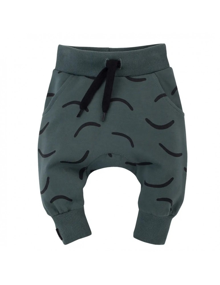 Spodnie wykonane z delikatnej, mięciutkiej bawełny, starannie uszyte. Posiadają gumę w pasie pozwalającą na szybkie, sprawne przewinięcie i przebranie dziecka. Z tej serii można dokupić również inne ubranka.