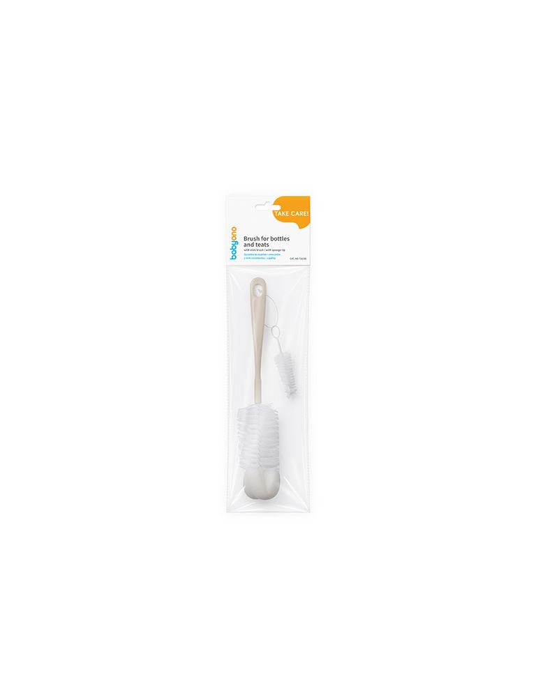 Babyono Szczotka do butelek i smoczków z gąbką i mini szczoteczką beżowa