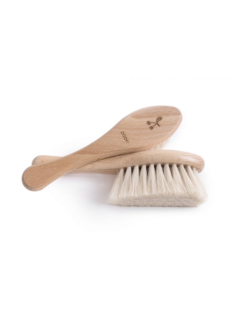 Szczotka dla dzieci i niemowląt, w pięknej bukowej oprawie i naturalnym, niezwykle miękkim kozim włosiem sprawdzi się jako pierwsza szczotka do masażu głowy i wyczesywania włosków niemowlaka.
