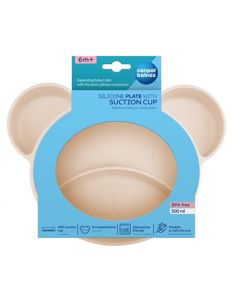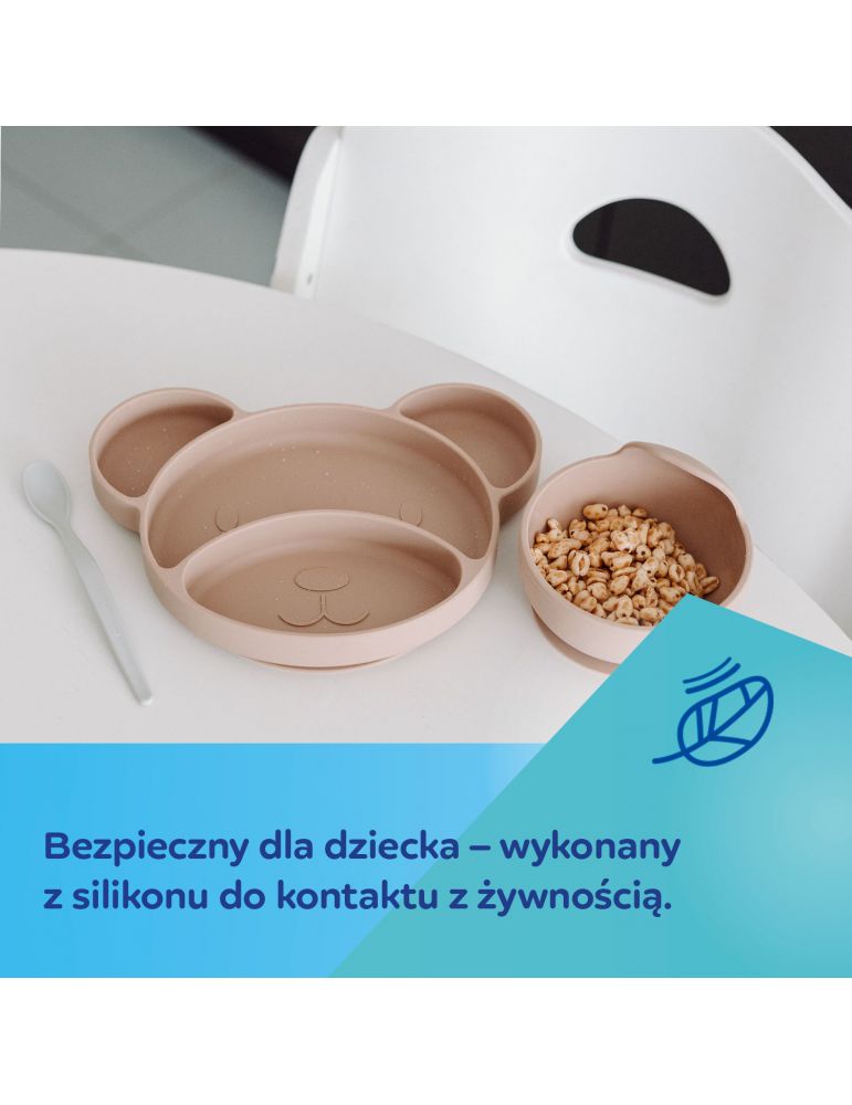 Canpol Babies Talerzyk silikonowy trójdzielny z przyssawką Miś kremowy