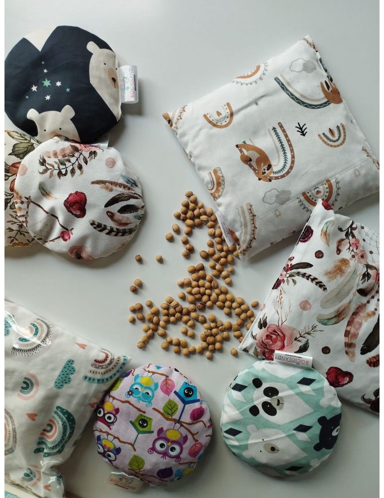 Materiały użyte do produkcji termoforów marki BOCIOLAND są najwyższej jakości. Zawsze są 100% bawełną i podlegają ścisłej selekcji. Pestki wiśni natomiast są idealnie wyczyszczone, nieuszkodzone i pochodzą z polskich upraw. Wzory, wielkość i ciężar termoforów zostały dobrane tak, by były odpowiednie dla swojej grupy wiekowej oraz żeby działały tylko na wybrane partie mięśni.