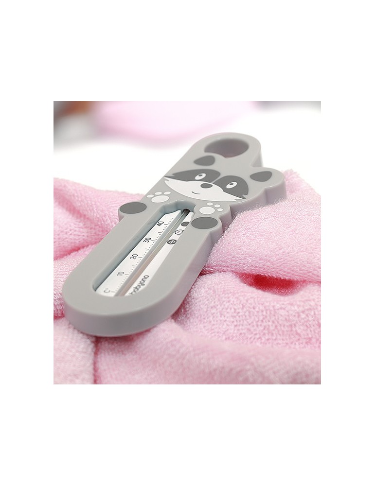 Termometr do kąpieli marki Babyono jest bardzo wygodny i niezbędny podczas każdej kąpieli noworodka. W sposób bezpieczny i niezawodny pomoże w uzyskaniu i utrzymaniu właściwej temperatury kąpieli Twojego dziecka. Do pomiaru wykorzystano parafinę zatopioną w bezpiecznej rurce, co zapewnia całkowite bezpieczeństwo jego użytkowania. Duża i czytelna skala ułatwia odczyt wysokości temperatury. Dzięki lekkiej konstrukcji termometr unosi się na powierzchni wody przez cały czas kąpieli, co pozwala na ciągłą kontrolę temperatury. Prawidłowa temperatura wody powinna wynosić ok. 37 stopni Celsjusza i jest oznaczona na skali uśmiechniętą buźką.