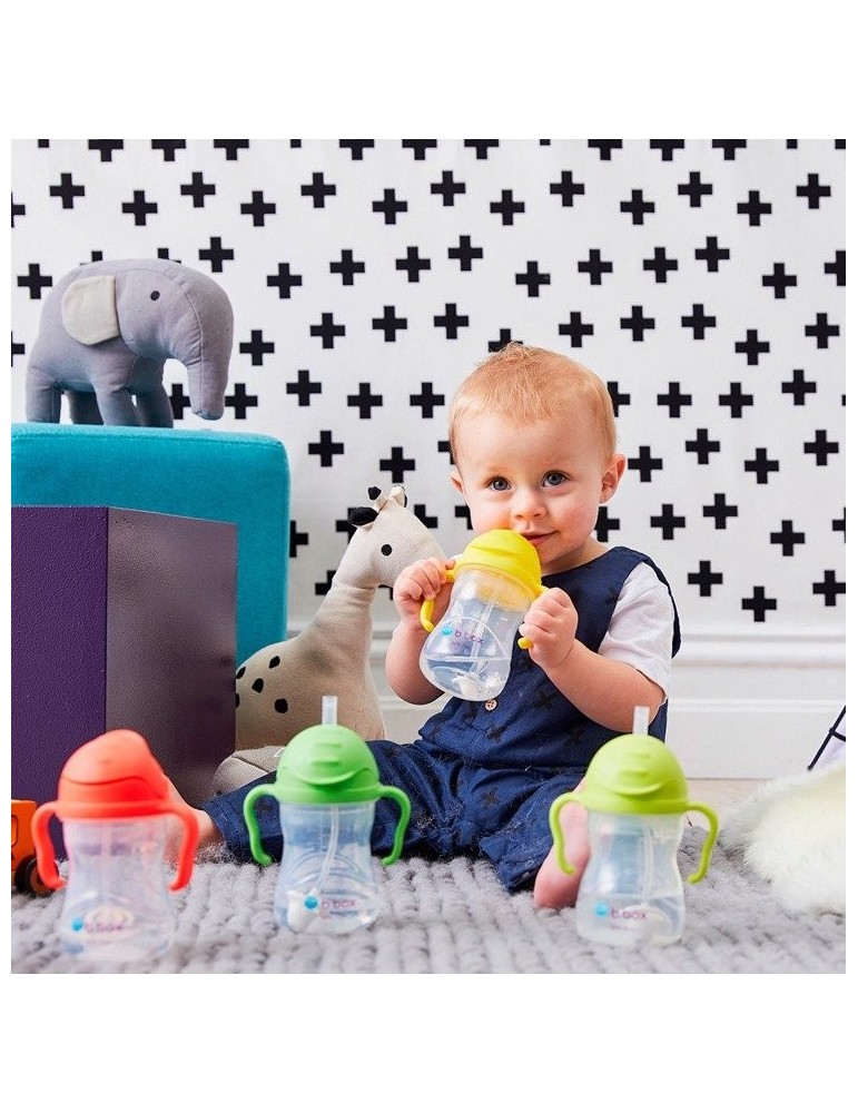 Oto wyjątkowa odsłona innowacyjnego bidonu b.box. Całym sobą zachęca by po niego sięgnąć i pić. Uroczy design oczywiście idzie w parze z wyjątkowym rozwiązaniem, które umożliwia dziecku wypicie ulubionego napoju aż do ostatniej kropli i to trzymając kubek w dowolnej pozycji. Maluch może dokonać tej sztuki dzięki specjalnie zaprojektowanej słomce z obciążeniem, które wykorzystując grawitację, pozwala jej "podążać za płynem". Dzięki temu z bidonu da się pić nawet wtedy, gdy odwrócony jest do góry dnem. Co więcej słomkę wyposażono w dwukierunkowy zawór, który wraz z uszczelką i wzmocnioną pokrywką zapewnia szczelność kubeczka.