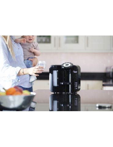 To prawdziwy domowy pomocnik, który bierze na siebie przygotowywanie pokarmu zawsze o idealnej konsystencji i temperaturze takiej samej jak mleko matki, ponieważ najpierw dozuje gorącą wodę, a potem reguluje jej ciepłotę puszczając zimną.
