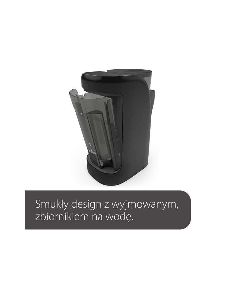 4. Urządzenie dozuje mleko modyfikowane z hermetycznego pojemnika na proszek do lejka i miesza je z wodą w wybranej przez Ciebie temperaturze