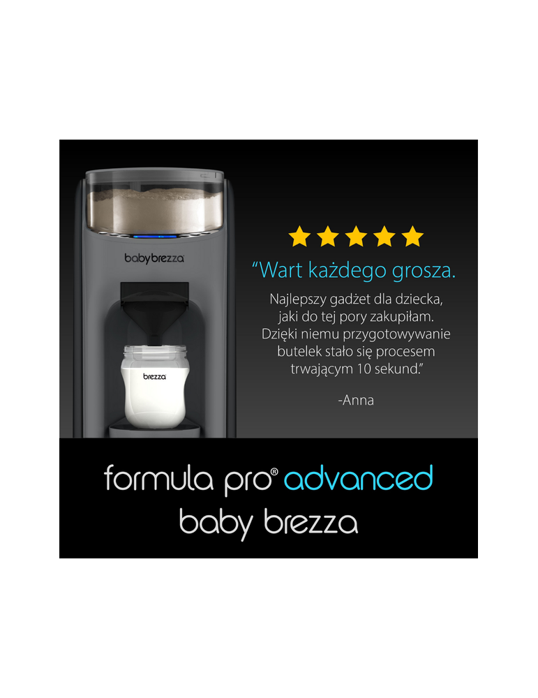 Formula Pro Advanced Charcoal od Baby Brezza to rewolucyjny ekspres do mleka, który sprawi, że przygotowanie każdej butelki dla maluszka będzie szybsze i mniej stresujące. Teraz dostępny również w nowym kolorze - Charcoal. Maszyna miesza mleko modyfikowane z wodą i dozuje jednorodną formułę w wybranej temperaturze - bezpośrednio do butelki. Na stronie www.babybrezza.pl znajduje się lista przetestowanych mlek, które pogrupowane są w 10 kategorii, żeby jak najdokładniej dobrać doskonałe ustawienia Formula Pro Advanced do mleka z którego korzystacie, ogranicza to możliwość popełnienia błędu w dawkowaniu. Pożegnajcie rozsypane mleko na blacie kuchennym w środku nocy i płacz maluszka czekającego 5 min na butelkę - powitajcie Baby Brezza Formula Pro Advanced!
