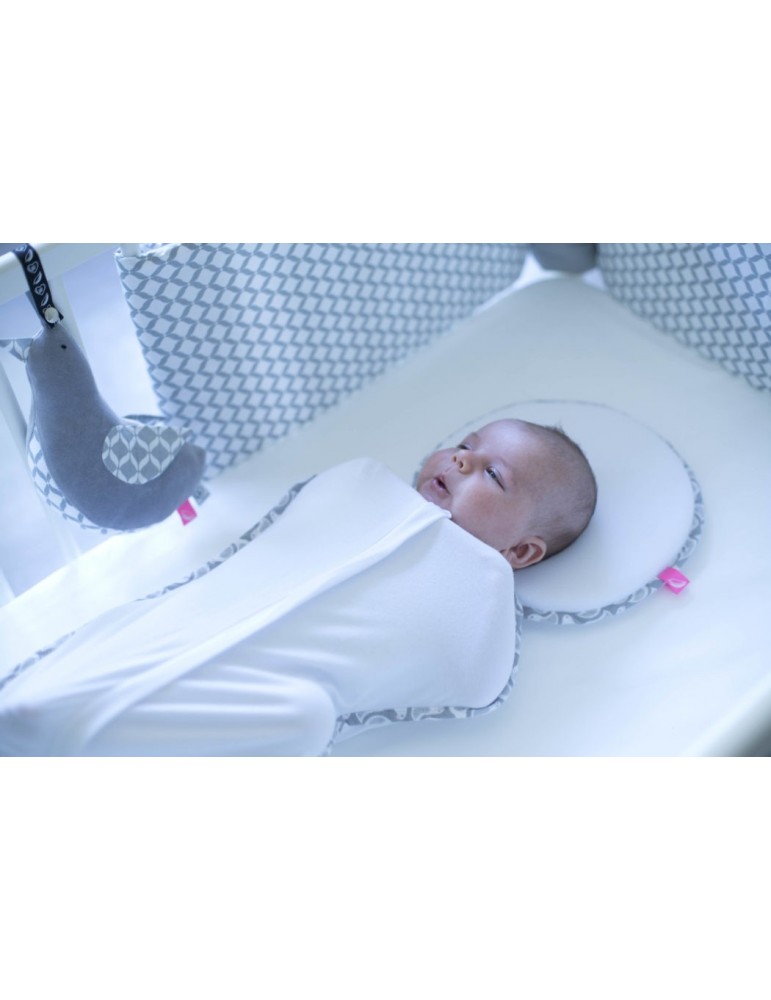 Ergonomiczny kształt pomaga utrzymać idealny owal dziecięcej główki: poduszka utrzymuje ją w stabilnej pozycji, przez co zapobiega odkształcaniu delikatnych kości potylicy.