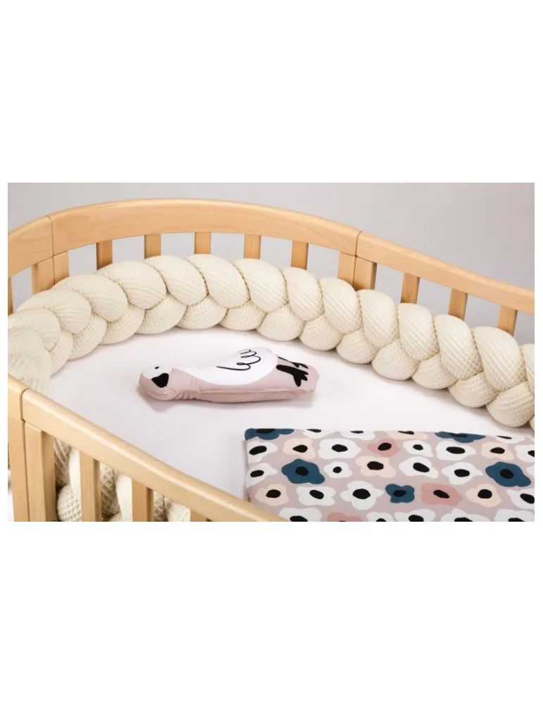 Warkocz ochronny wykonany z antyalergicznych, miękkich i sprężystych materiałów najwyższej jakości umożliwi niemowlakowi bezpieczne poruszanie się wewnątrz łóżeczka, chroniąc przed uderzeniami.