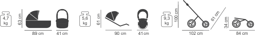 - Refleksyjne tkaniny sprawiają że wózek jest widoczny w złych warunkach pogodowych oraz w nocy.