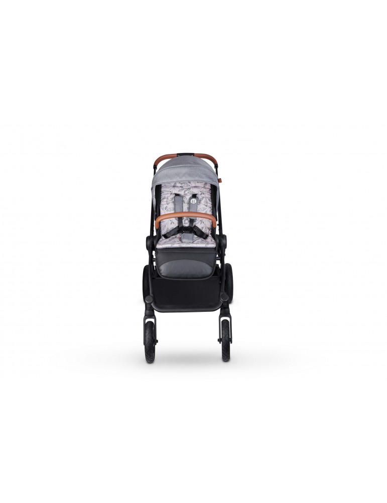Siedzisko jest obrotowe, mozna je zamontować w kierunku jazdy i w kierunku przeciwnym do kierunku jazdy. Można je również odchylić do pozycji prawie całkowicie leżącej. Podnóżek jest również regulowany i bardzo łatwy w czyszczeniu. Daszek jest rozkładany z wentylacją i okienkiem kontrolnym. Szerokie siedzisko zapewni Twojemu dziecku komfort, a 5-punktowe pasy – jego bezpieczeństwo. Obrotowy pałąk pokryty jest ekoskórą i można go całkowicie wypiąć. W tylnej części oparcia znajduje się kieszonka na drobiazgi. Pojemny wózek na zakupy ma udźwig 3 kg. Wózek jest odpowiedni od urodzenia do 22 kg.
