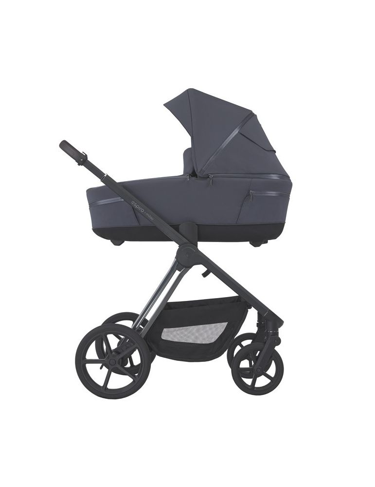 - Wózek miloo z dodatkowo płatnymi adapterami do fotelików samochodowych 0+, na zdjęciu z fotelikiem espiro Pi
