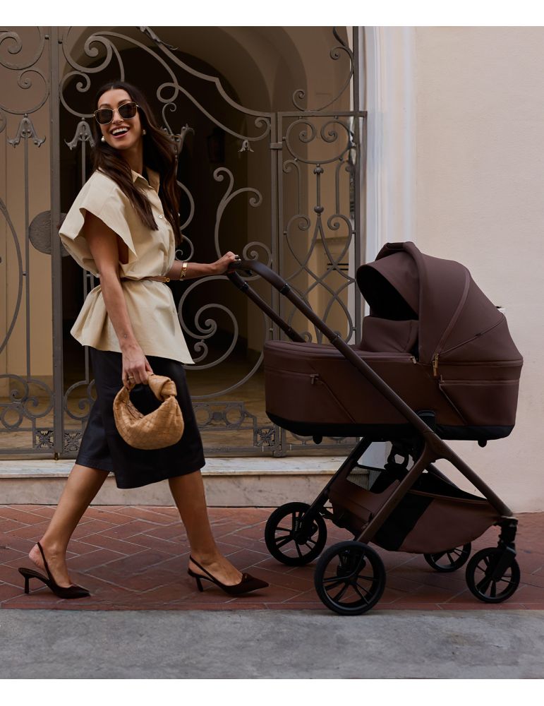 Subtelne detale, miękkie linie i starannie dobrane faktury tworzą wózek, który podąża za modą – z klasą i lekkością charakterystyczną dla włoskiego stylu.