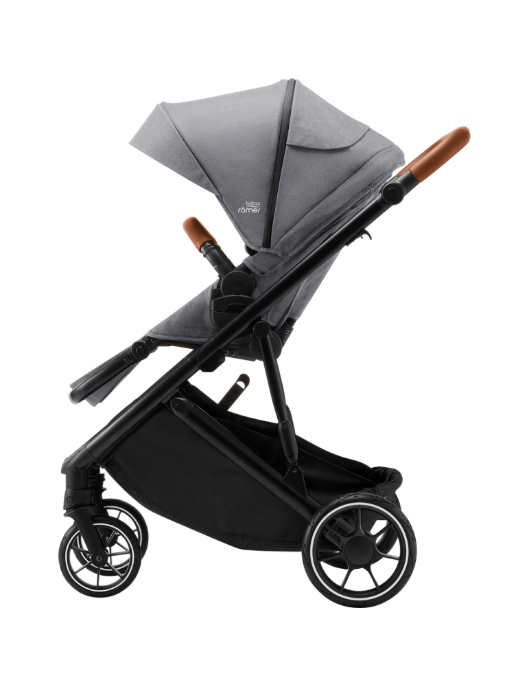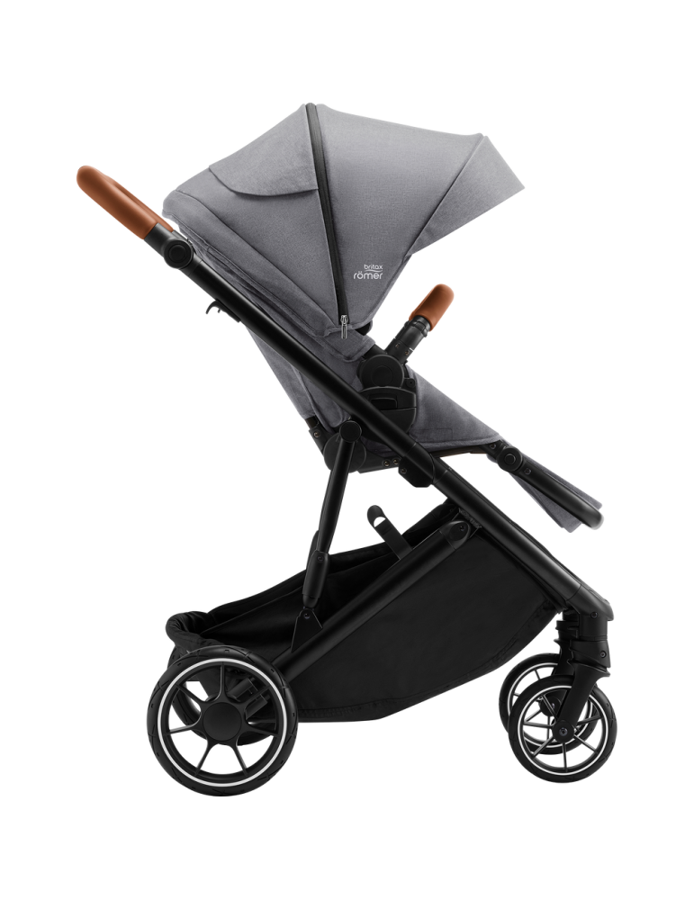 Aby zapewnić dziecku zawsze wygodną pozycję, oparcie wózka można regulować jedną ręką od pozycji pionowej do pozycji leżącej, zapewniając jednocześnie stałą ochronę z boku. Dodatkowo regulowany podnóżek sprawia, że siedzisko po rozłożeniu do pozycji leżącej jest kompatybilne z miękką gondolą.