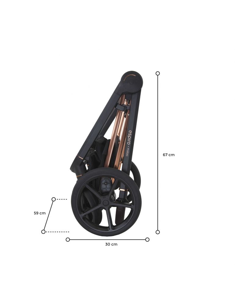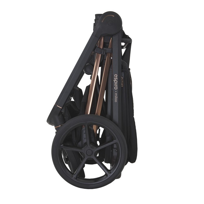 Spacerówkę espiro miloo way złożysz za pomocą jednej ręki – umożliwia to system lift and go. Złożony wózek ma kompaktowe rozmiary, co docenią rodzice, którzy będą często transportować go w bagażniku samochodowym. Oprócz tego funkcjonalna konstrukcja espiro miloo way daje możliwość wpięcia spacerówki tyłem lub przodem do kierunku jazdy – by przywiązany do rodzica maluch nie tracił kontaktu wzrokowego z mamą lub tatą.