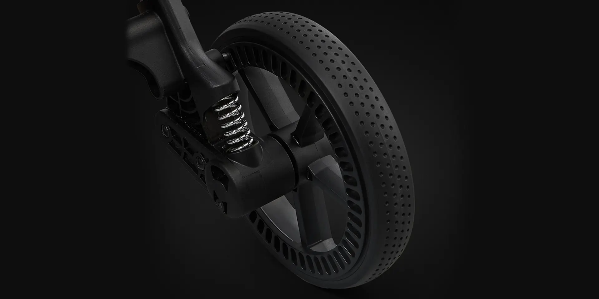 Wytrzymałe, bezobsługowe koła PU z zaawansowaną amortyzacją gwarantują płynne prowadzenie w każdych warunkach – od miejskiego bruku po nierówne leśne ścieżki.