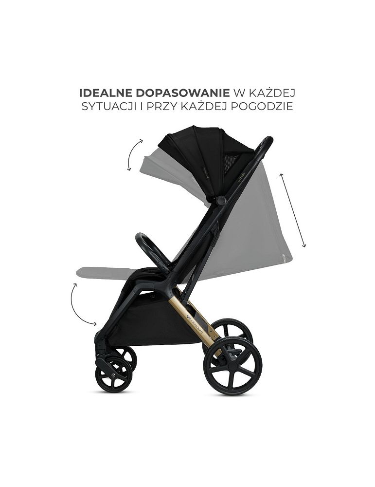 LOOM wyróżnia się zwrotnością – łatwo prowadzi się go jedną ręką, a koła odporne na przebicia radzą sobie w różnych warunkach. Budka chroni przed słońcem i wiatrem, a panele wentylacyjne dbają o odpowiednią cyrkulację powietrza, zapewniając komfort przez cały rok.