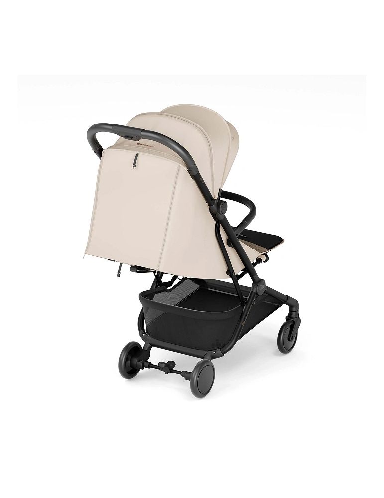 Wózek wyposażono w ochronny pokrowiec, który zabezpiecza go przed zabrudzeniami i uszkodzeniami podczas transportu. Pasek na ramię jest na stałe przymocowany do wózka i można go zapiąć pod spodem, gdy nie jest używany, co zapobiega jego przeszkadzaniu w trakcie jazdy.