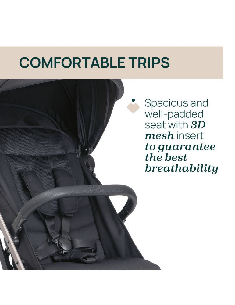 Przyjemne i wysokiej jakości, miękkie w dotyku tkaniny, dopracowane w najdrobniejszych szczegółach; kolorowe logo Chicco i wstawka z powlekanej tkaniny. Kolorowe, anodowane rurki pasują do plastikowych elementów i bieżnika kół.