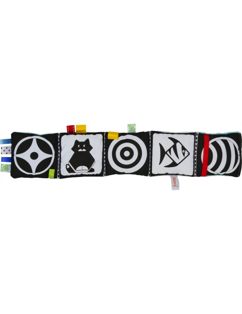 Mięciutka, materiałowa książeczka sensoryczna od Mom's care została stworzona z myślą o najmłodszych. To właśnie w pierwszym okresie życia dziecka kluczową rolę odgrywa stymulacja zmysłów. Wodzenie spojrzeniem i wpatrywanie się w zabawki rozwija zmysł wzroku oraz spostrzegawczość malucha. Do uszycia książeczek sensorycznych używamy bezpiecznych, przyjemnych w dotyku materiałów o różnej strukturze, które z pewnością zaciekawią badawcze paluszki. Dzięki temu dziecko poznaje świat i stymuluje zmysł dotyku. Noworodek ma słaby wzrok, dlatego książeczka sensoryczna będzie dla niego idealna. Przewaga biało-czarnych elementów rozwija prawidłowe postrzeganie barw. Wraz z upływem czasu dziecko widzi coraz lepiej, więc można sięgać po zabawki w innych kontrastujących kolorach.
