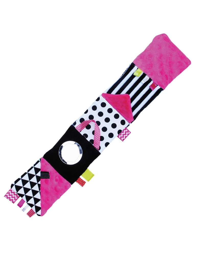 Różowa książeczka pełna jest niespodzianek. Liczne elementy interaktywne takie jak szeleszczące strony, metki, lusterko z pewnością zapewnią dziecku wspaniałą zabawę na długi czas, dodatkowo stymulując jego zmysły. Dostosowaliśmy rozmiar książeczki tak, aby dziecko mogło ją z łatwością złapać i by przyjemność z zabawy była jeszcze większa.
