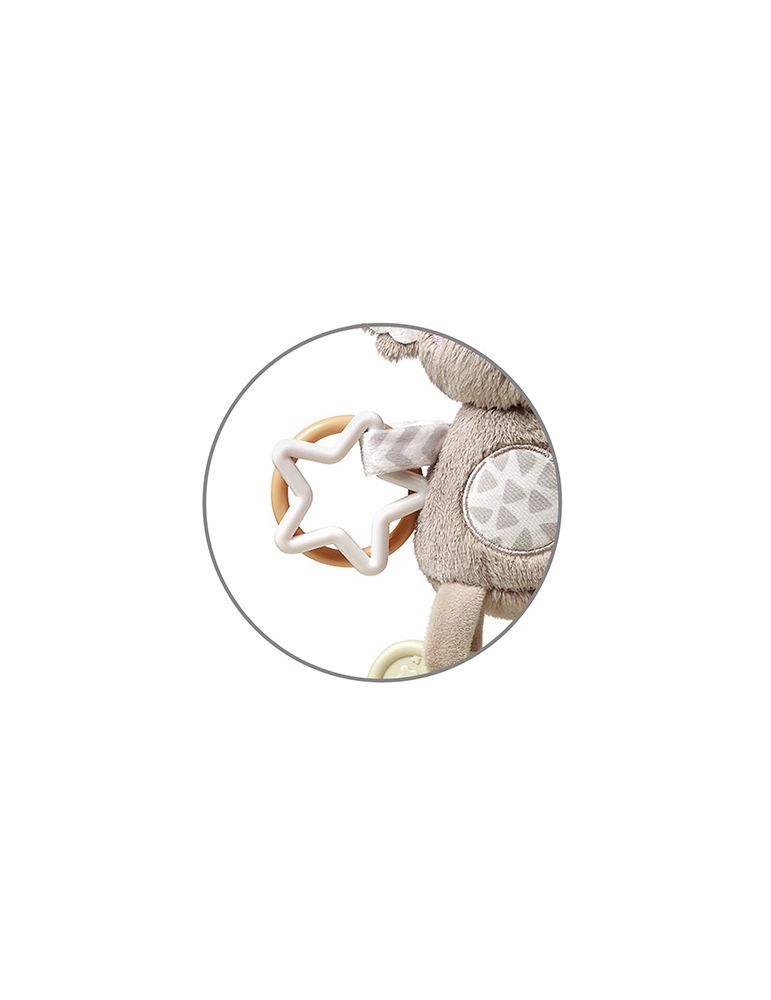 Praktyczny i uniwersalny uchwyt daje możliwość zawieszenia zabawkina wózku, w foteliku czy w łóżeczku.