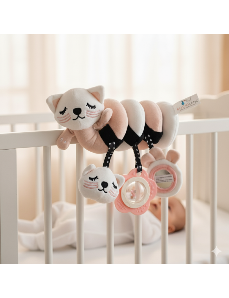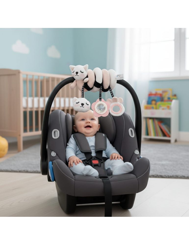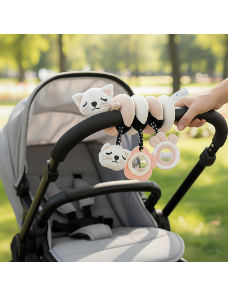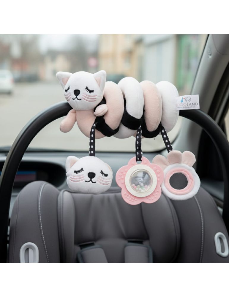 Bezpieczna. Miękka. Rozwijająca. Spraw, by każdy spacer i podróż były pełne uśmiechu – wybierz spiralną zawieszkę Kotek.