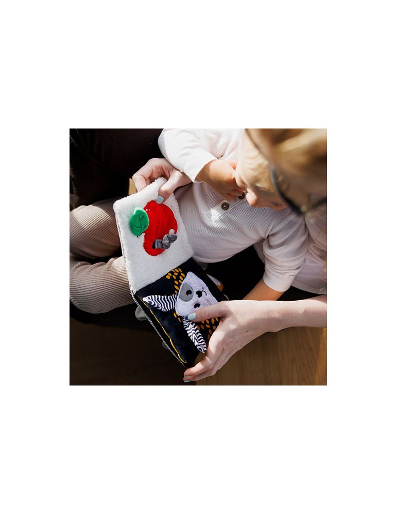 Książeczka jest lekka i kompaktowa, idealna dla małych rączek. Kontrastową książeczkę zawiesisz na łóżeczku, wózku lub foteliku.