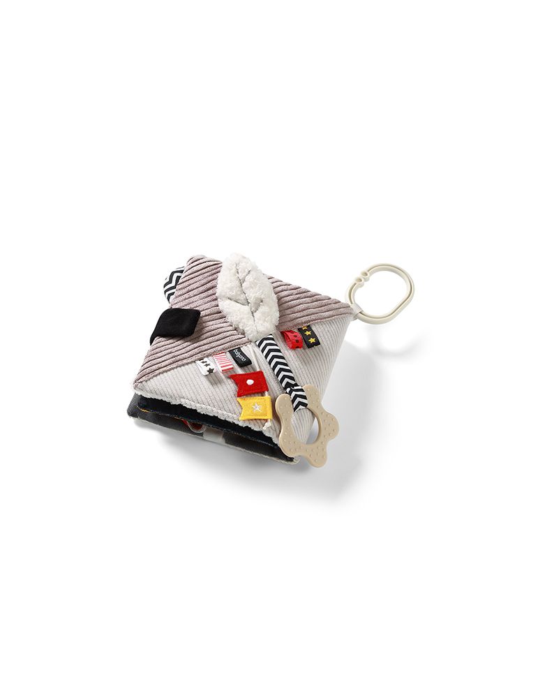 Do materiałowej książeczki dla dzieci dodaliśmy elastyczny gryzak z wypustkami. To masaż dla podrażnionych dziąseł i dodatkowa atrakcja sensoryczna. Twój maluszek poczuje ulgę przy ząbkowaniu.