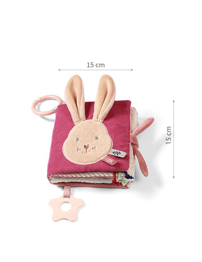 Miękka książeczka sensoryczna dla niemowląt Rabbit Karo przeniesie Twojego malucha na kolorową, pełną niespodzianek łąkę. Zapewni wspaniałą zabawę, rozwój zmysłów i umiejętności motorycznych- w domu i na spacerach.